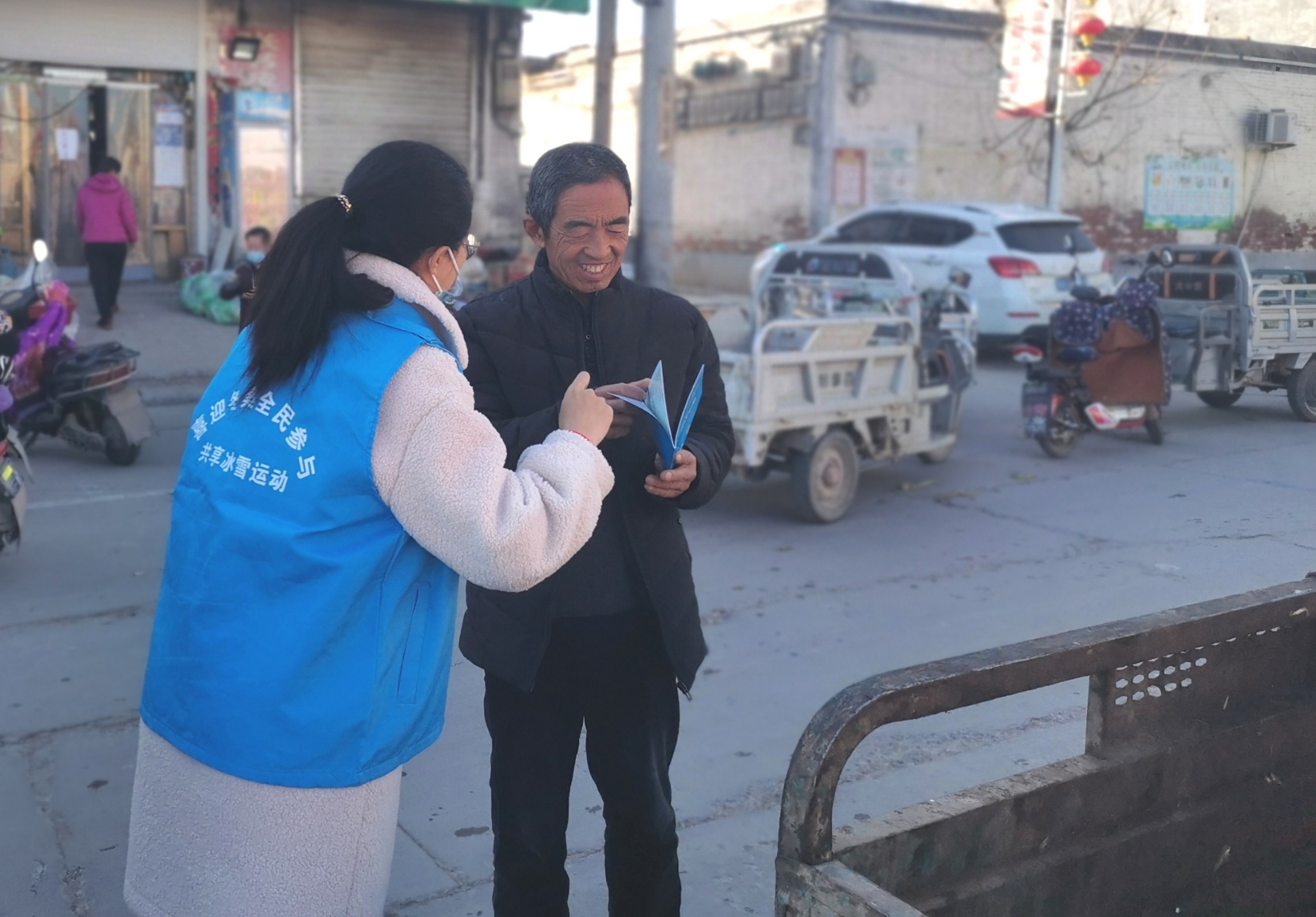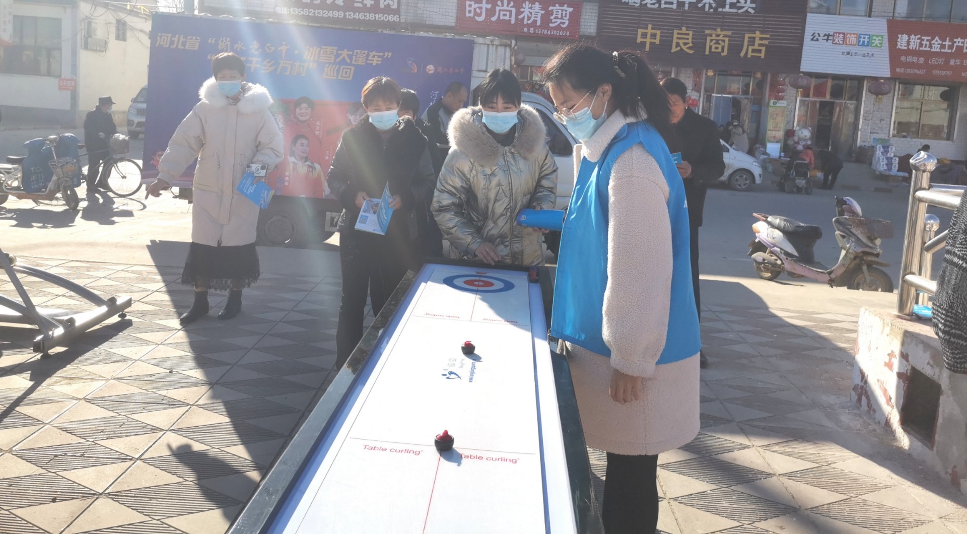 本次活动把陆地冰壶、桌上冰壶、模拟滑雪机等陆地化的冰雪体验活动,以及冰雪运动知识和文化送进农村,居民热情参与。