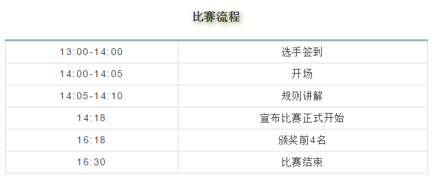 如没有按照比赛签到时间,进行签到,则被视为放弃比赛,并取消参赛资格。
