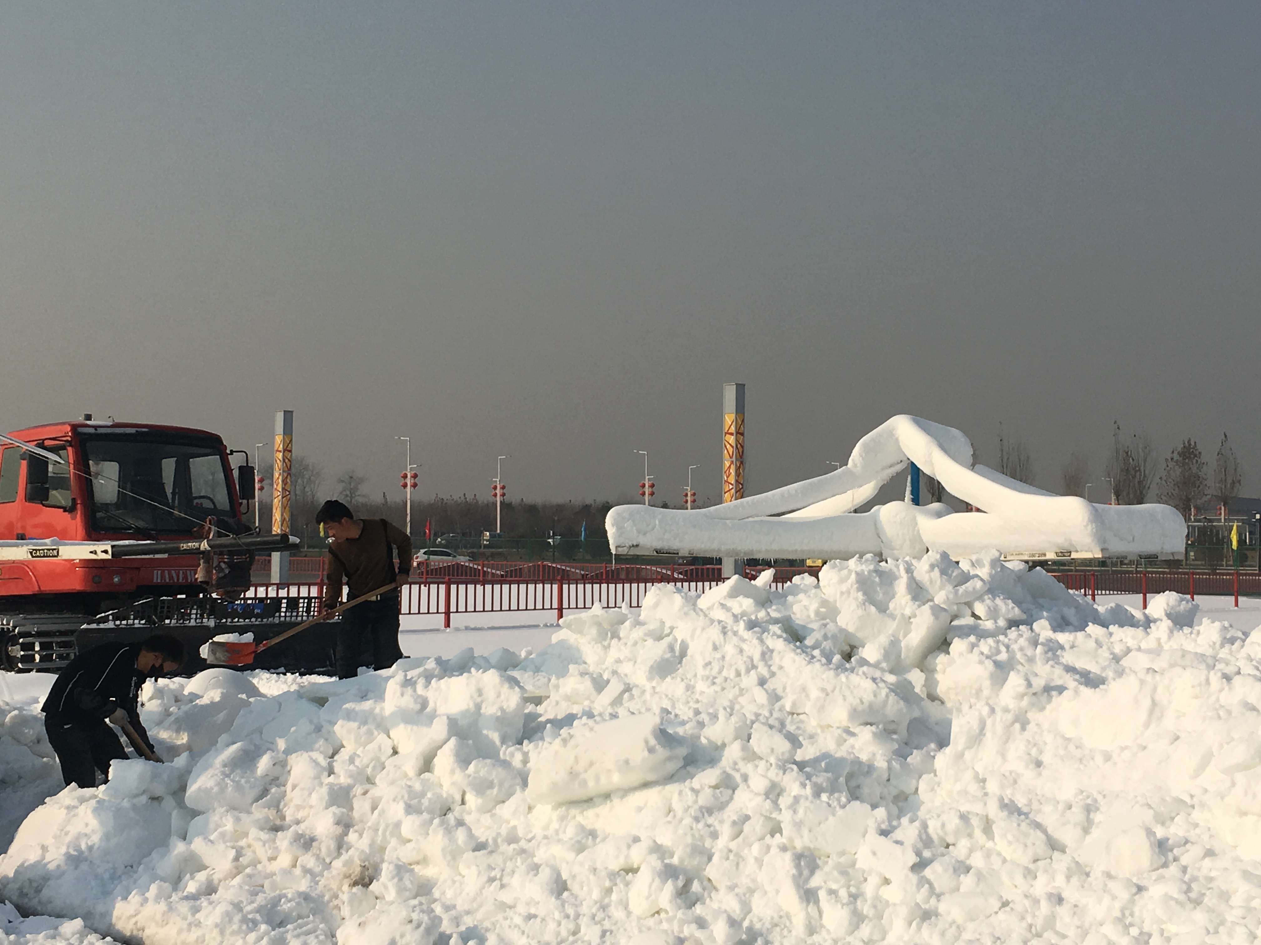 正定县冰雪嘉年华现场紧锣密鼓在制作安装。
