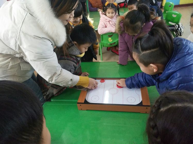 冰球运动成为人们越来越喜欢的一个体育项目,西里寨幼儿园也有了孩子们专属的桌上冰球。