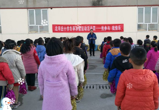 全体师生在操场上举行了“我参与,我快乐”北辛庄小学冰雪运动活动周开幕仪式。