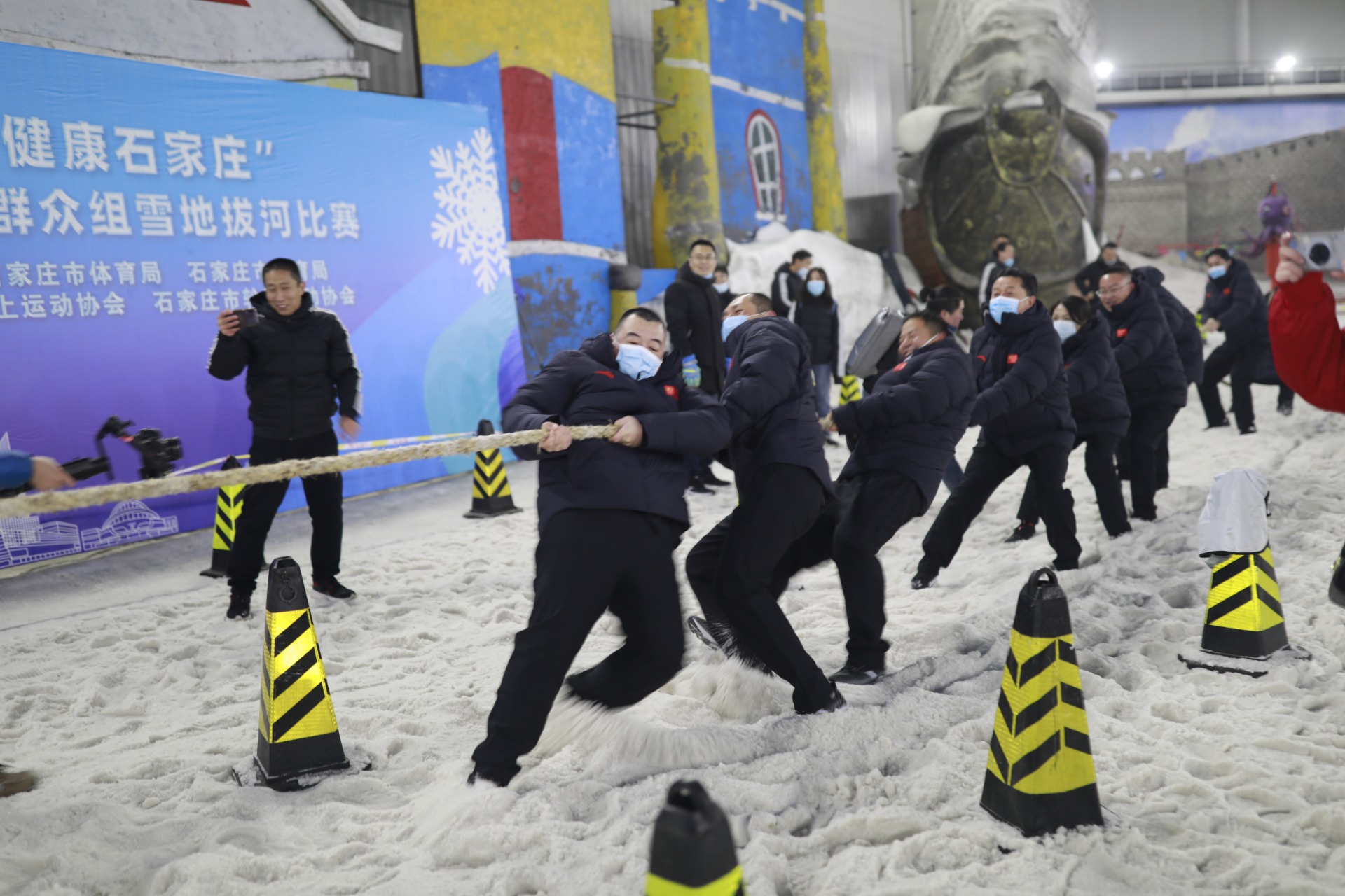 正定县参加石家庄市第二届冰雪运动会开幕式,进行了拔河赛