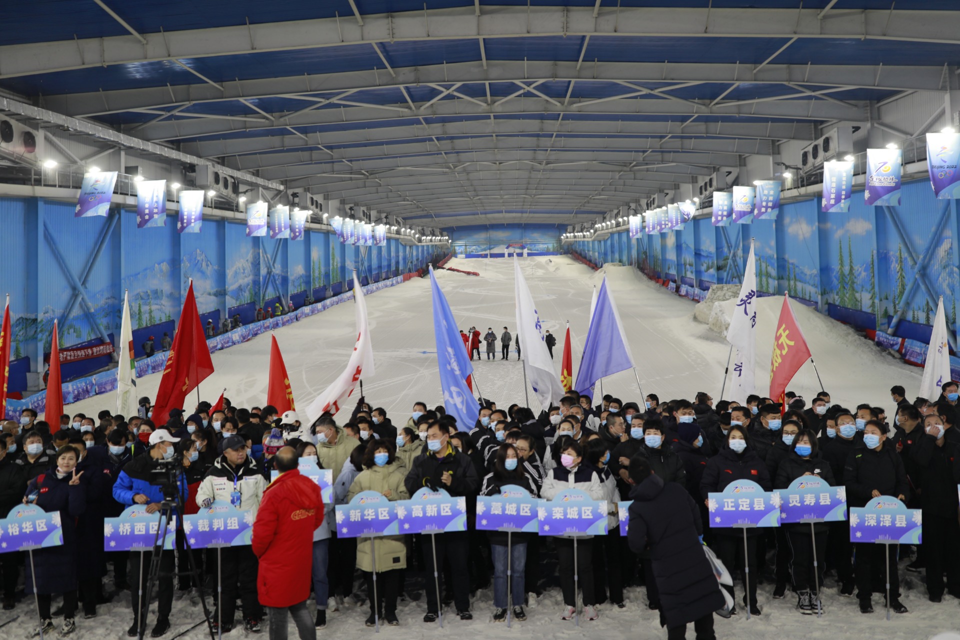 11月22日,石家庄市第二届冰雪运动会在西部长青滑雪馆开幕,石家庄各市区县22个代表队参加开幕式。