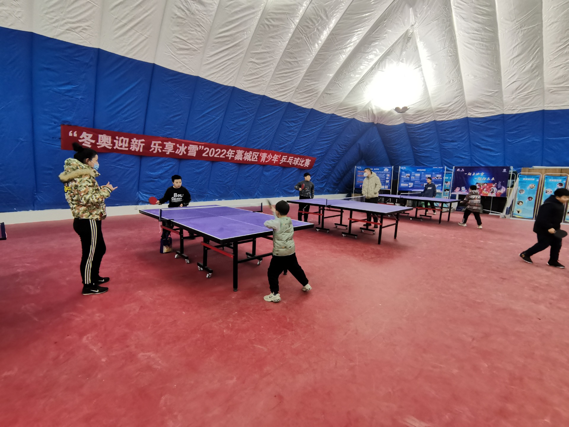 为2022年北京冬奥会的顺利举行,助力冬奥,藁城区文广体旅局联合藁城区乒乓球协会,社会体育指导协会,新动力乒乓球训练基地在体育公园全民健身中心开展了“助力北京冬奥会”局成功举办了“冬奥迎新 乐享冰雪”2022藁城区青少年乒乓球比赛。为乒乓球爱好者提供了一个优质的竞技平台,展现风采。2月13日在体育公园气膜馆乒乓球比赛拉开了帷幕。