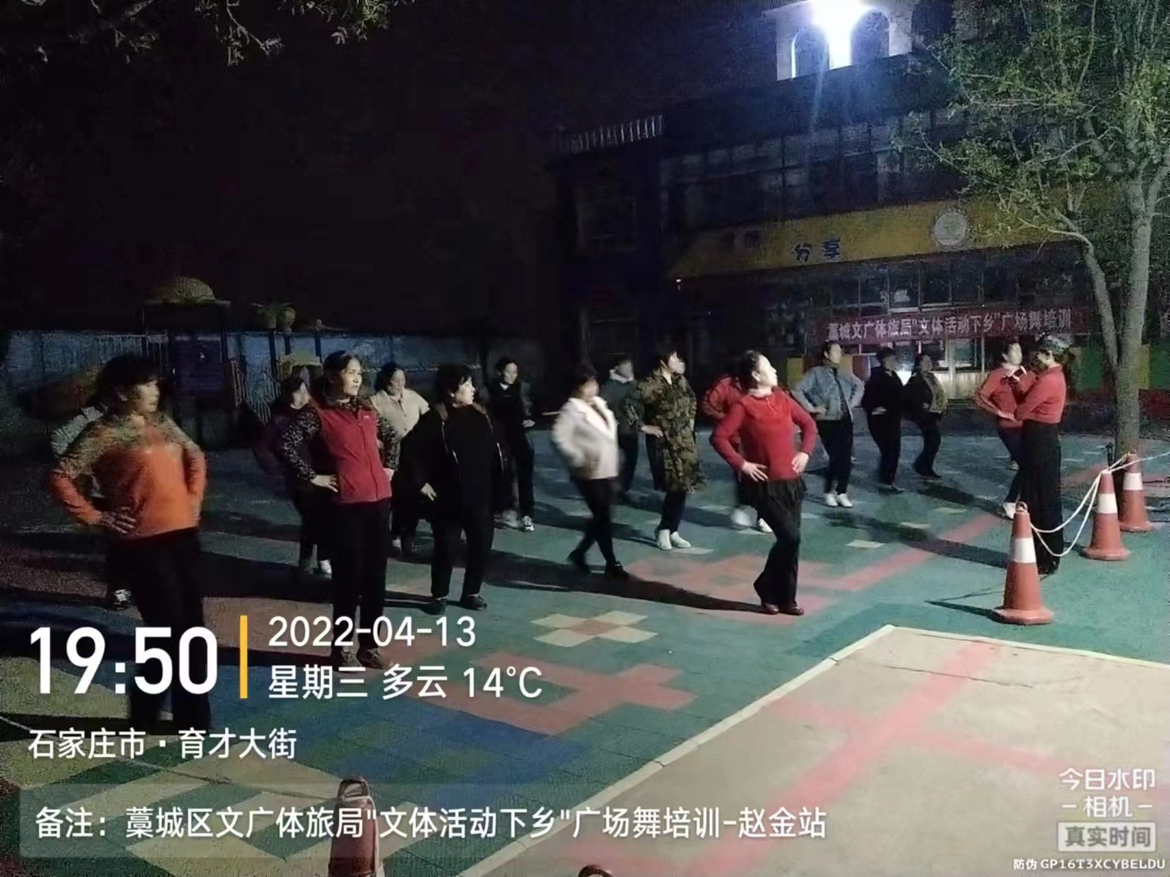 2022年4月13日藁城区文广体旅局魏敏卿科长和社会体育指导员协会姜明华会长携手2名体育指导员一行四人晚上来到了梅花镇赵金村与当地的广场舞爱好者进行交流和培训,共同开展"送文化下乡活动”。受到了广大广场舞爱好者的热烈欢迎。