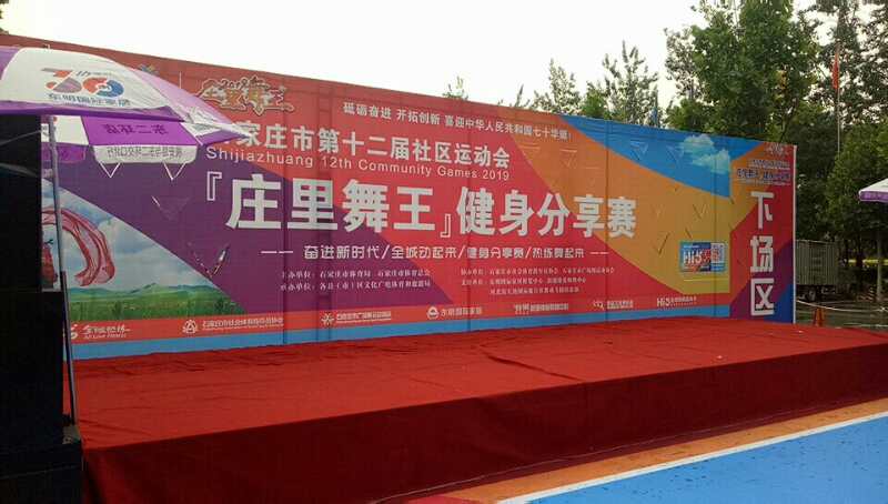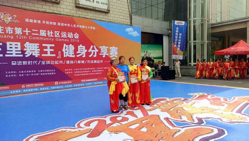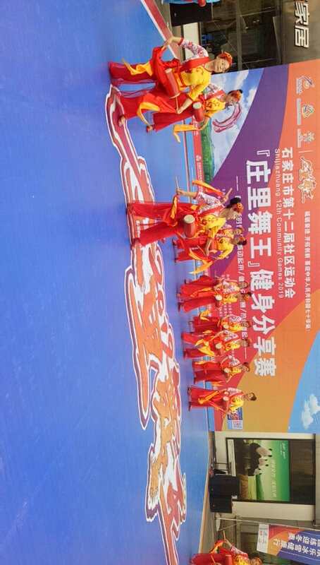 2019年6月2日我区鸿艺舞蹈队代表藁城区参加石家庄市第十二届社区运动会“庄里舞王”健身腰鼓分享赛。