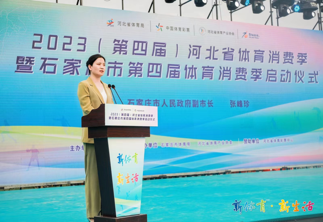 张峰珍在致辞中表示,近年来,石家庄围绕打造体育强市,深入实施全民健身战略,积极探索体育消费新业态,培育体育产业新热点,激发体育市场新活力,全市体育消费规模稳步扩大、市场需求日益多元、产业结构不断升级,为经济社会发展注入了生机和活力。此次石家庄市体育消费季活动,以“新体育·新生活”为主题,坚持“搭建平台、整合资源、惠企惠民、开放共赢”的原则,充分调动体育产业优势力量,创新体育消费场景,必将成为拉动经济、扩大就业的重要引擎。