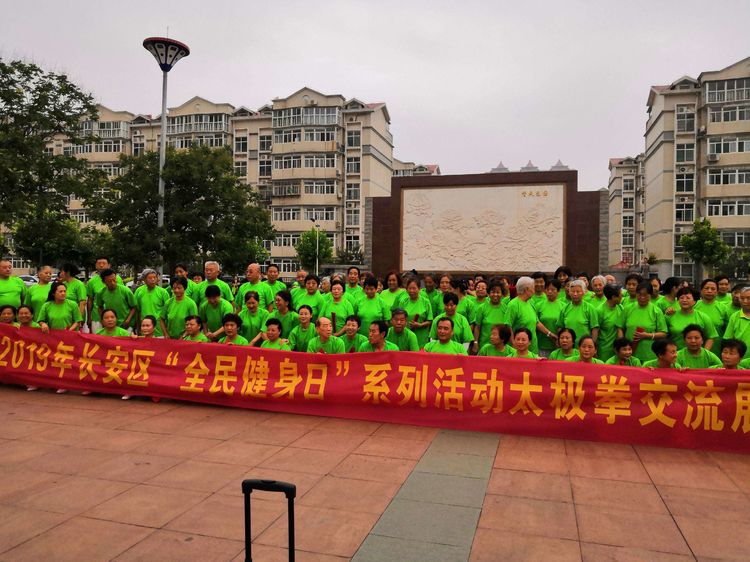 8月4日,长安区文化广电体育和旅游局在金谈固家园中心广场举办了“全民健身日”系列活动-太极拳展演。主题活动“我健康,我快乐。今年是第11个全民健身纪念日。为进一步推动我区全民健身的蓬勃开展,响应国家体育总局的号召,积极倡导健康文明的生活方式。来自全区30个站点,500余人参加了本次活动。全民健身,重在参与。这次活动,主要以大型集体方队展示为主。有太极功夫扇方队,八法五步方队,健身气功易筋经方队,以及中华通络操方队。最后全体演练了24式太极拳。场面宏大,动作整齐,振撼人心!为全民健身运动,描绘出一幅动人的画卷,展示出了我长安区全民健身特色风彩!