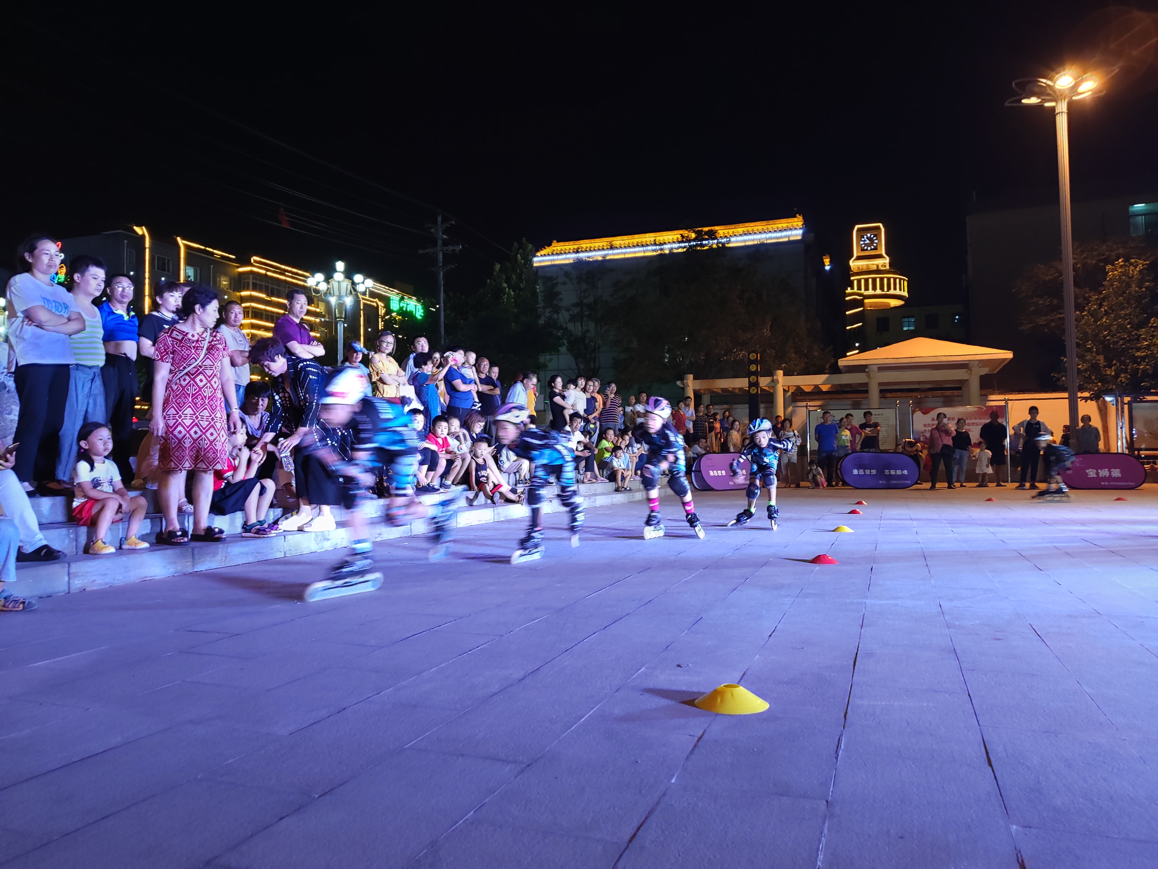正定县速度滑冰协会抓住暑期的尾巴,在子龙广场进行速滑表演,吸引更多的速度轮滑爱好者参加轮滑运动。