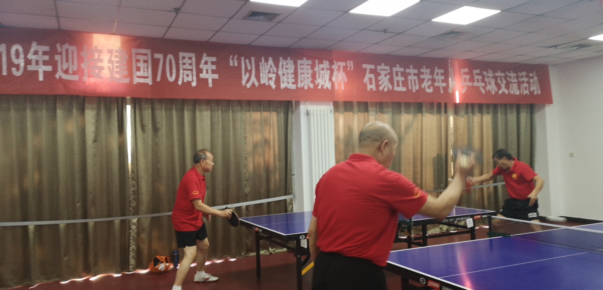 为迎接建国70周年,石家庄市老年人组织开展乒乓球“以岭健康城杯”交流活动,