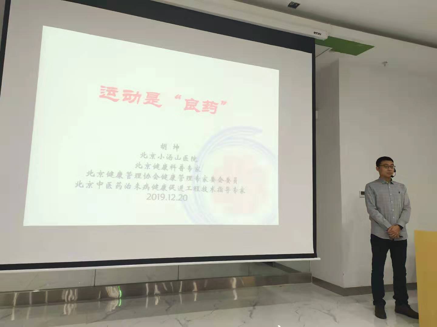 2019年12月20日,河北省全民健身科学指导大讲堂(长安区站)在石家庄市全民健身中心一楼会议厅开课,来自全区100多名社区体育指导员参加了本次培训,由北京小汤山医院有氧运动中心主任、北京健康科普专家胡坤老师进行了运动是“良药”—运动健康促进基础理论课;国家级教练员王松桦老师进行了科学健身十八法亲身动作教学。此活动的开展不仅全面了解健身常识,还能结合自身体能状况进行科学健身锻炼,获得了学员们的一致好评。