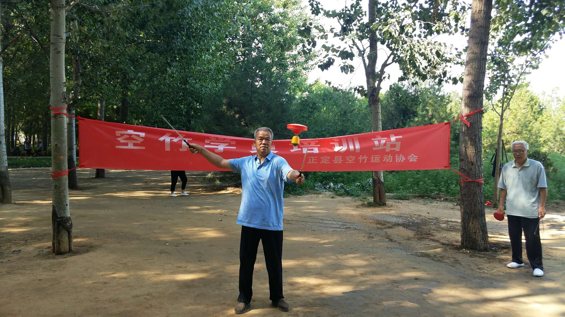 七月流火,正定县空竹协会锻炼不停。